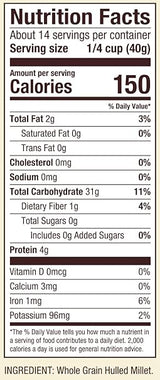 A hearty source of whole grains, Bob's Red Mill millet is a healthy, gluten-free option for any meal. Millet has a mild, sweet flavor, and quick cooking time. This ancient grain originated in the Far East, and remains a popular option in Asia. Enjoy whole grain millet as a unique alternative to rice in salads, stir-fries and pilaf.