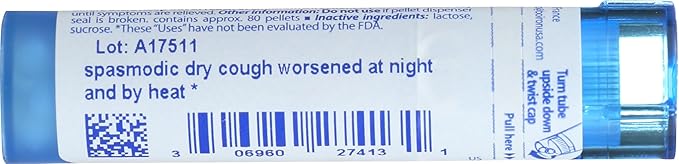 Customize your care with Boiron single medicines for highly targeted relief. Drosera is a homeopathic medicine that relieves spasmodic dry cough worsened at night and by heat.* The pellets melt in your mouth and can be taken on the go, no food or water needed.