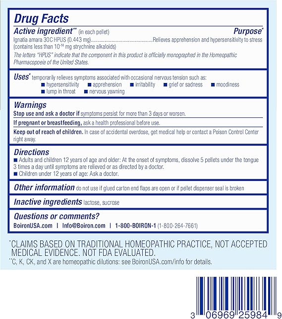 • This over-the-counter (OTC) homeopathic package contains 3 easy-dispense tubes for a total of approximately 240 pellets (16 doses per tube; 48 doses per package) that is portable and easy to dispense - home or travel/on the go