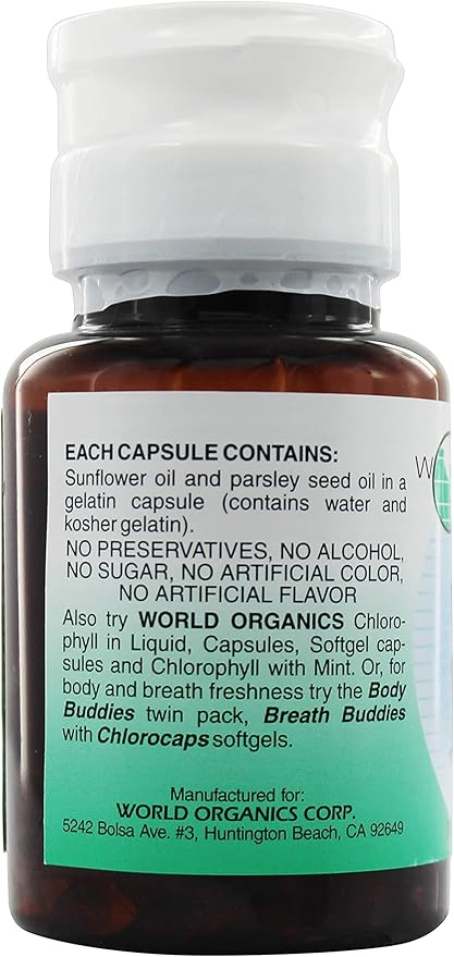 Sunflower oil and parsley seed oil in a gelatin capsule (contains water and kosher gelatin)