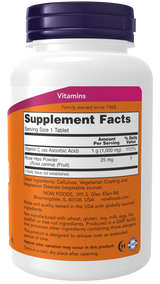 Vitamin C is a water soluble nutrient well known for its vital role in the immune system.* Vitamin C is also necessary for the production of collagen (a structural protein in connective tissue) and is therefore important for skin, bone, and joint health.* Vitamin C is needed for amino acid metabolism, neurotransmitter synthesis, and the utilization of many nutrients, such as folic acid and iron.* It is also a highly effective antioxidant that can help maintain healthy tissues by neutralizing free radicals generated during normal metabolism and exposure to environmental stressors.* This product was specially formulated to provide a sustained release of vitamin C and includes rose hips as an added source of vitamin C.