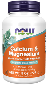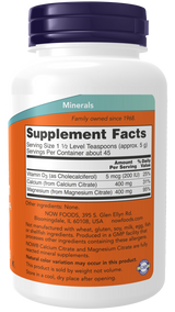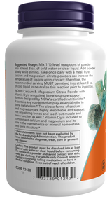 NOW® Calcium & Magnesium Citrate Powder with Vitamin D3 is an optimal bone structure support formula designed by NOW's certified nutritionists.* It contains key nutrients that play essential roles in bone metabolism.* The citrate forms of calcium and magnesium are highly absorbable and support not only strong bones and teeth but muscle and nerve function as well.* Vitamin D3 is included to complement calcium and magnesium and its role in the maintenance of mineral homeostasis and bone structure.*
