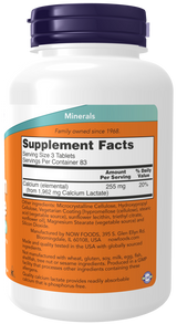 NOW® Calcium Lactate is a stable and bioavailable form of phosphorus-free calcium. Calcium is a mineral that is essential for the growth and maintenance of healthy bones and teeth.* Calcium is also critical to many body functions, including normal muscle contraction, nerve conduction, and vascular function.*