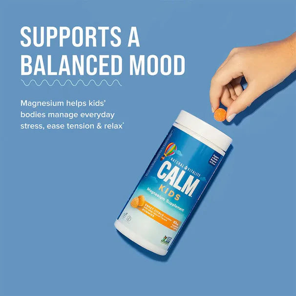 Support a balanced mood and healthy development with Natural Vitality CALM® for Kids Gummies, a magnesium supplement with sweet citrus flavor.