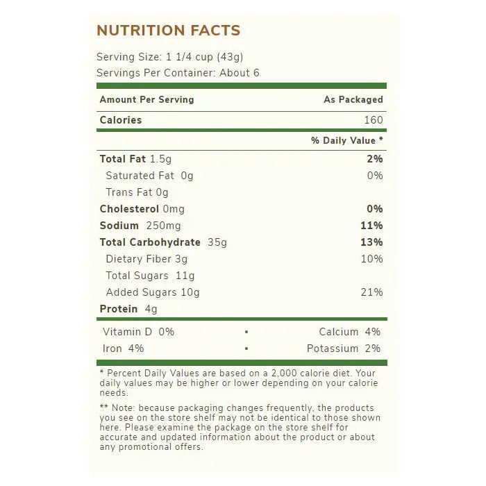 - Organic whole grain oat & barley cereal with a hint of honey and almond