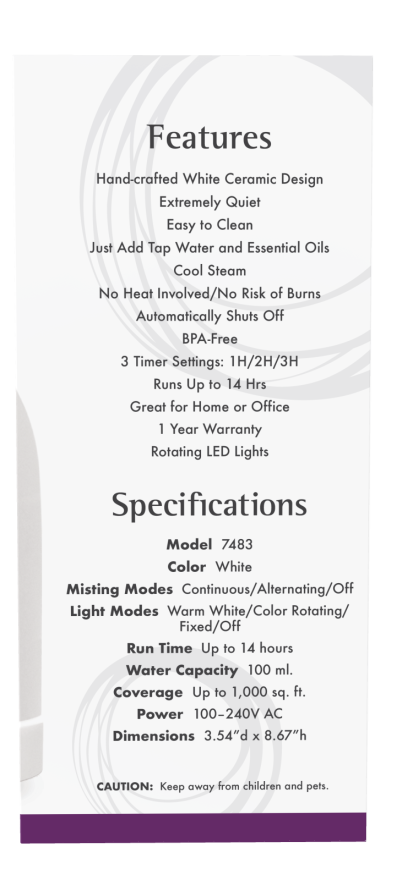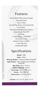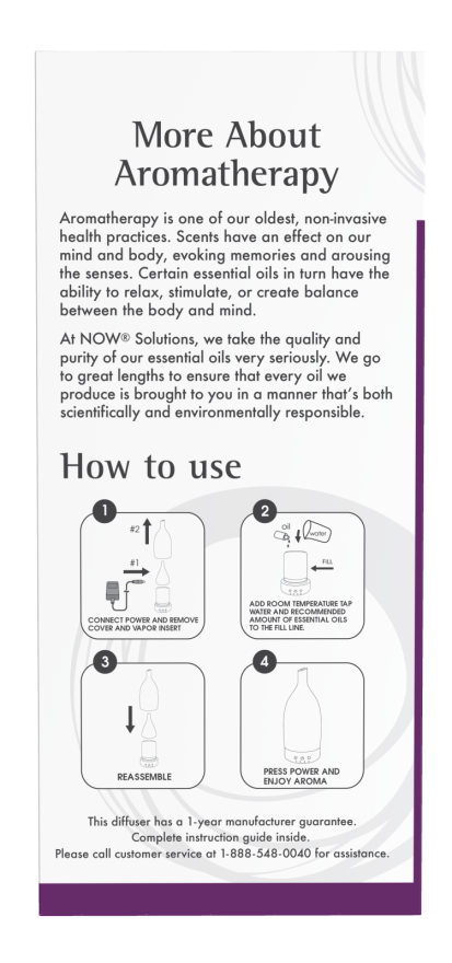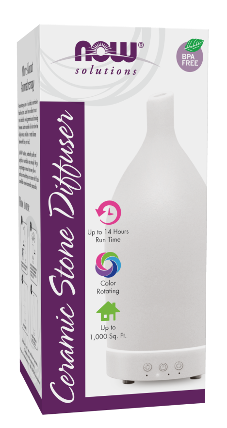 NOW® Solutions Ultrasonic Ceramic Stone Oil Diffuser unites scientific innovation with the timeless tradition of aromatherapy to create a BPA-free diffuser that uses only tap water and your favorite essential oils. Instead of heat, this contemporary diffuser utilizes high frequency, ultrasonic electrical vibrations to create an ultra-fine mist, which helps to maintain essential oil integrity and holistic properties. With an automatic shut-off and up to 14 hours of whisper-quiet operation, this diffuser is the perfect complement to your home or office.