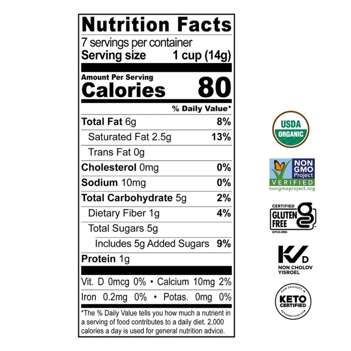 - Organic, Non-GMO, Keto Friendly, Gluten Free and Kosher