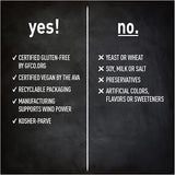 • Gluten Free & Vegan: Gluten-free certification provided by GFCO.org. Vegan certification provided by the American Vegetarian Association (AVA).