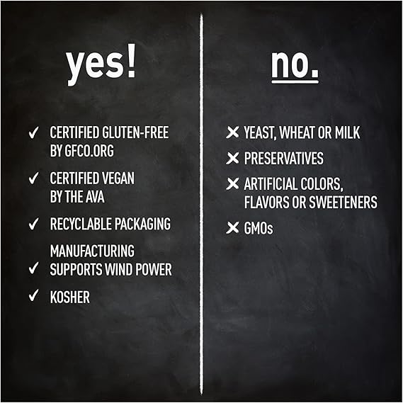 - ABSOLUTELY FREE OF: Yeast - Wheat - Gluten - Milk - Artificial Colors - Artificial Flavors - Artificial Sweeteners - GMOs