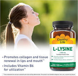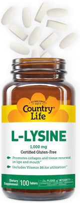 L-lysine is an essential amino acid that your body does not make on its own and is difficult to source through diet alone. It supports the structure and function of collagen found in skin tissue and is also essential to its renewal, particularly in the lips and mouth region.** It plays a role in collagen formation, along with its function in supporting the immune system.** Country Life includes vitamin B6 in this formula to support the body’s utilization of lysine.**