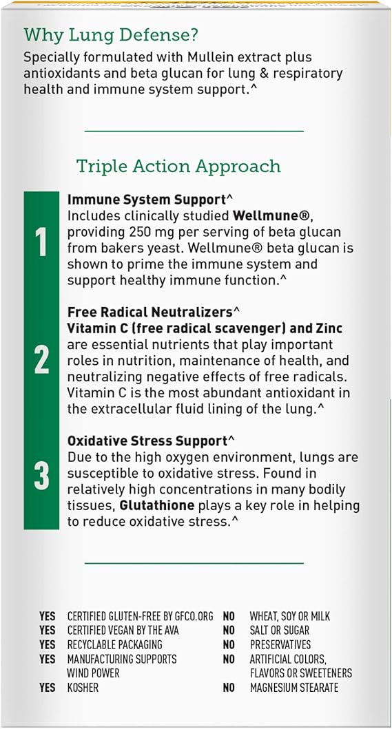 • Supports lung health, promotes a healthy immune response, and supports the immune system through clinically studied ingredients.