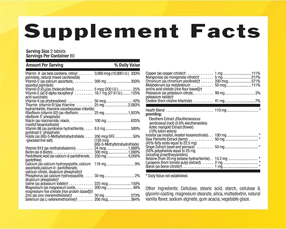• An iron-free multivitamin and multimineral complex that includes key nutrients for men's health