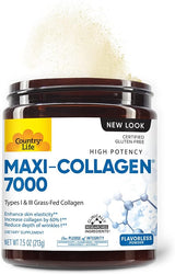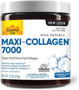 - High Potency Collagen Blend: Country Life Maxi-Collagen 7000 is formulated with 4,500 mg of grass-fed collagen type I & III and 2,500 mg of Verisol bioactive collagen peptides clinically studied to improve skin elasticity and reduce wrinkles.