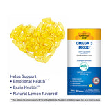 Omega 3 Mood combines pure, highly concentrated omega-3 fatty acids, sourced from coldwater fish oil, with a small dose of vitamin E for a mood supporting formula based in science.** Unable to be efficiently made in the body, healthy levels of the omega-3 fatty acids EPA and DHA must be supplemented to promote emotional health and mood.** Just two softgels provide 2000mg fish oil for 1000mg EPA and 150mg DHA in a natural lemon flavor - with no fish taste.