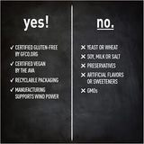 - Gluten-free, vegetarian, kosher pareve, GF certified by GFCO.org, certified vegetarian by AVA