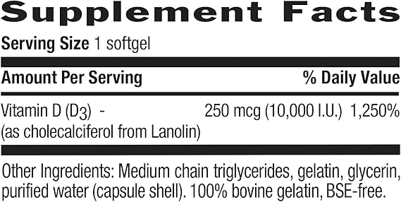 Shine from the inside out with a healthy dose of the one and only “sunshine” vitamin. Vitamin D is an essential but oftentimes elusive vitamin that our bodies only make after our skin is exposed to the sun.** Unfortunately, most people don’t get enough sunlight to produce a sufficient amount of vitamin D for optimal nutrition.** Vitamin D aids in the absorption of calcium, helping to form and maintain healthy bones and teeth.** Vitamin D also supports colon and immune health.** The high potency Vitamin D3 10,000 I.U. found in this formula comes from lanolin, a sustainable and safe source in a base of medium chain triglycerides (MCTs). Also available in 1000 I.U., 2500 I.U. and 5,000 I.U. strengths.