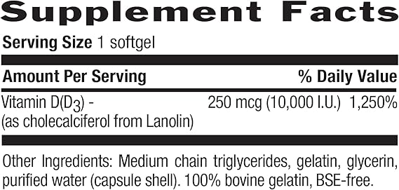 Shine from the inside out with a healthy dose of the one and only “sunshine” vitamin. Vitamin D is an essential but oftentimes elusive vitamin that our bodies only make after our skin is exposed to the sun.** Unfortunately, most people don’t get enough sunlight to produce a sufficient amount of vitamin D for optimal nutrition.** Vitamin D aids in the absorption of calcium, helping to form and maintain healthy bones and teeth.** Vitamin D also supports colon and immune health.** The high potency Vitamin D3 10,000 I.U. found in this formula comes from lanolin, a sustainable and safe source in a base of medium chain triglycerides (MCTs). Also available in 1000 I.U., 2500 I.U. and 5,000 I.U. strengths.