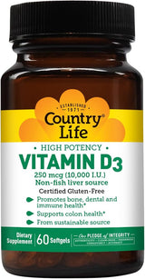Country Life VITAMIN D3 10,000IU 60 Softgel is backordered and will ship as soon as it is back in stock.