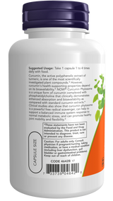 Curcumin, the active polyphenolic extract of turmeric, is one of the most scientifically investigated plant compounds.* However, curcumin's health-supporting properties depend on its bioavailability.* NOW® Curcumin Phytosome is a unique form of curcumin complexed with phosphatidylcholine that clinically demonstrates enhanced absorption and bioavailability as compared with standard curcumin extracts.* Clinical studies also show that curcumin phytosome is a powerful free radical scavenger, can help to support a balanced immune system response to normal metabolic stress, and can promote healthy joint mobility and flexibility.*