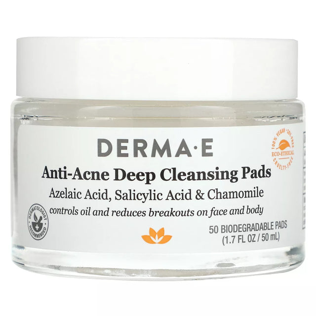 DERMA E Anti-Acne Deep Cleansing Pads, 50 Pads, 1.7 fl oz (50 ml)