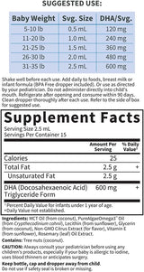 - PLANT BASED BABY DHA DROPS: Baby's DHA is not only vegetarian friendly—it's also Third-Party tested and Certified Non-GMO and Vegan; The pleasant, mild Citrus flavor makes it easy to add DHA daily to your little one's food, breast milk or infant formula