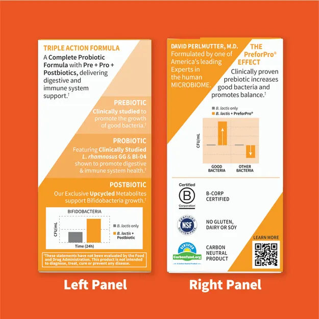 - Triple Action Formula: Pre + Pro + Postbiotics