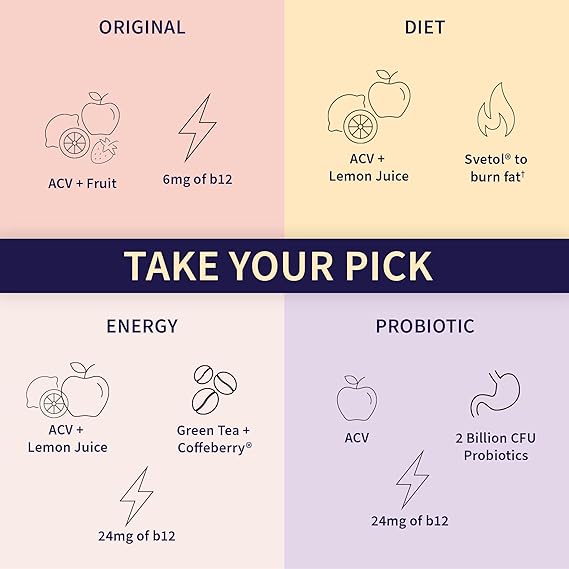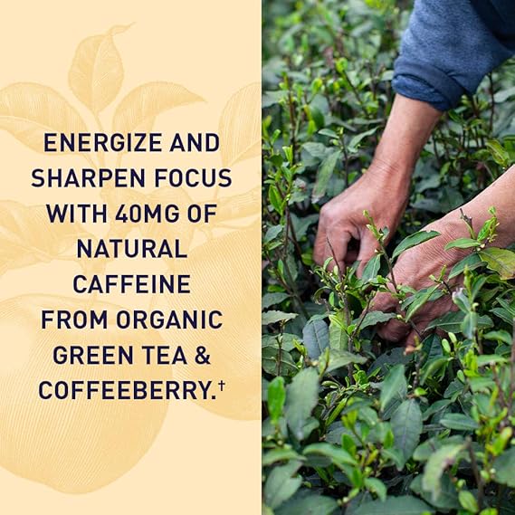- Energy Support: 3 gummies in the morning deliver 1,000 mg ACV and 24 mcg B12 plus 40 mg of natural caffeine from clinically studied organic green tea and coffee, to boost energy and sharpen mental focus, whether you're studying, working or working out.