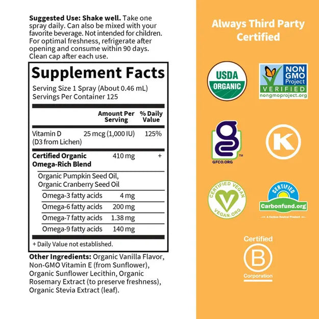Organics Vegan D3 Organic Spray 1,000 IU - Vanilla