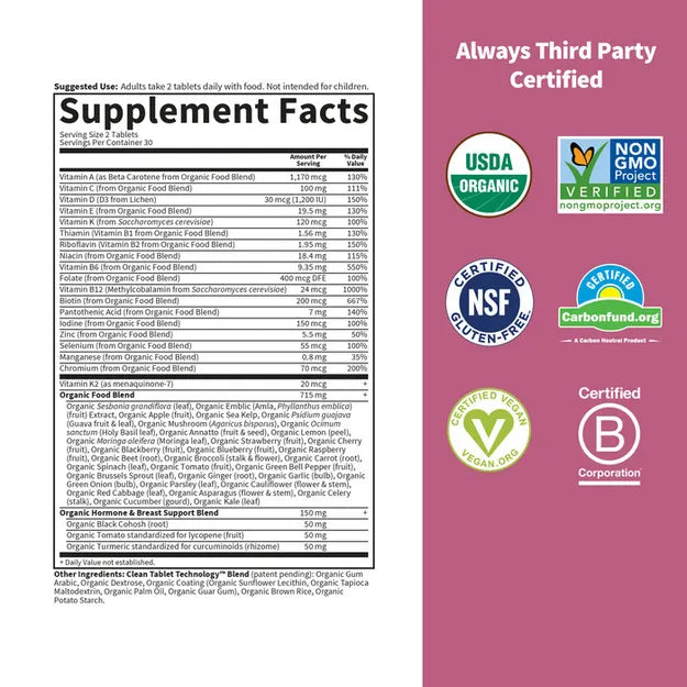 Garden of Life GOL Organics Womens 40 Multi 60ct TABLETS