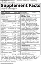 - KIDS VITAMINS THEY'LL BEG FOR: Our kids multivitamin chewable bears are specially formulated with essential vitamins and minerals, organic fruits and vegetables, and live probiotics for kids, providing immune system support, mental and physical energy, and more.