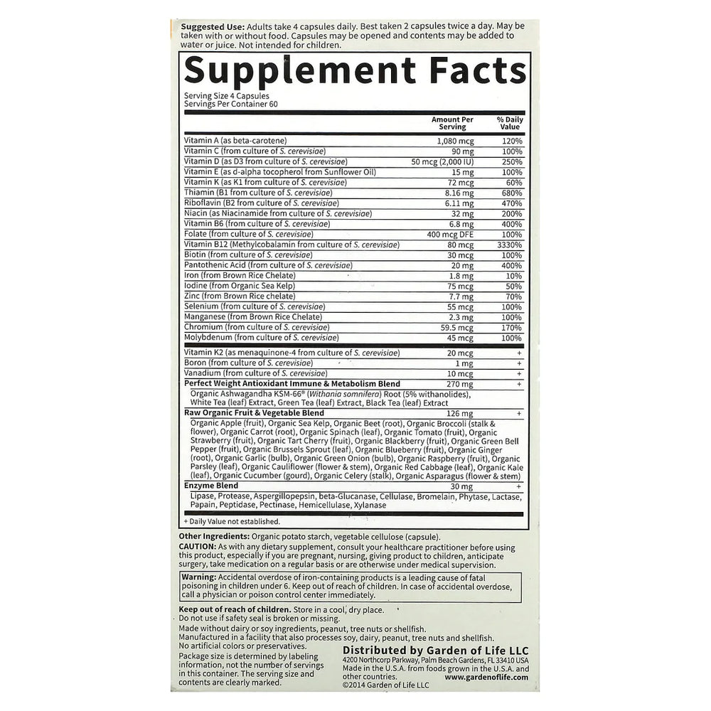 Garden Of Life, Vitamin Code - Perfect Weight Multi, 240 Vegetarian Capsules