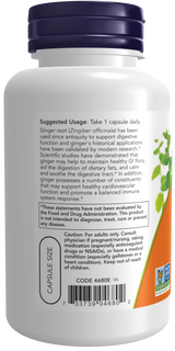 Ginger root (Zingiber officinale) has been used since antiquity to support digestive function and ginger's historical applications have been validated by modern research.* Scientific studies have demonstrated that ginger may help to maintain healthy GI flora, aid the digestion of dietary fats, and calm and soothe the digestive tract.* In addition, ginger possesses a number of constituents that may support healthy cardiovascular function and promote a balanced immune system response.*