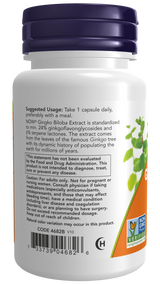 NOW® Gingko Biloba Extract is standardized to min. 24% ginkgoflavonglycosides and 6% terpene lactones. The extract comes from the leaves of the famous Ginkgo tree with its dynamic history of populating the earth for millions of years.