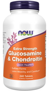 NOW® Extra Strength Glucosamine & Chondroitin combines two well-known joint support ingredients in their sulfate forms.* Glucosamine is an essential building block for the formation of glycosaminoglycans (GAG’s) and proteoglycans, the main components of cartilage tissue.* Chondroitin Sulfate is a glycosaminoglycan that has been combined with Glucosamine in this product for the support of proper joint mobility and comfort.*