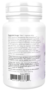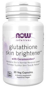 NOW® Solutions Glutathione Skin Brightener™ is a combination of two clinically validated ingredients that nourish from within to give skin a healthy glow.* First, glutathione helps to maintain normal expression of skin pigments, which can result in a bright and even skin tone, and helps to maintain skin’s natural moisture content and elasticity.* This product also features Ceramosides®, a plant extract highly concentrated in phytoceramides, which has been shown to moisturize skin from within and to maintain youthful skin appearance.*