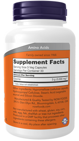 Glycine is the smallest and simplest amino acid, making it versatile for use in a wide range of functions. Glycine is necessary for the production of glutathione, DNA, creatine, bile, hemoglobin, and most proteins.* It also helps to promote glycogen storage, thereby making glucose readily available for energy production.* Glycine also functions as a calming neurotransmitter in the brain, where it facilitates nerve impulses and is important for the maintenance of healthy sleep patterns.*