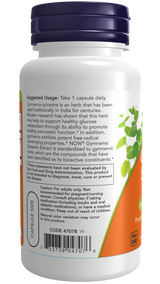 Gymnema sylvestre is an herb that has been used traditionally in India for centuries. Modern research has shown that this herb may help to support healthy glucose metabolism through its ability to promote healthy pancreatic function.* In addition, gymnema exhibits potent free-radical scavenging properties.* NOW® Gymnema Sylvestre Extract is standardized to gymnemic acids, which are the compounds that have been identified as its bioactive constituents.*