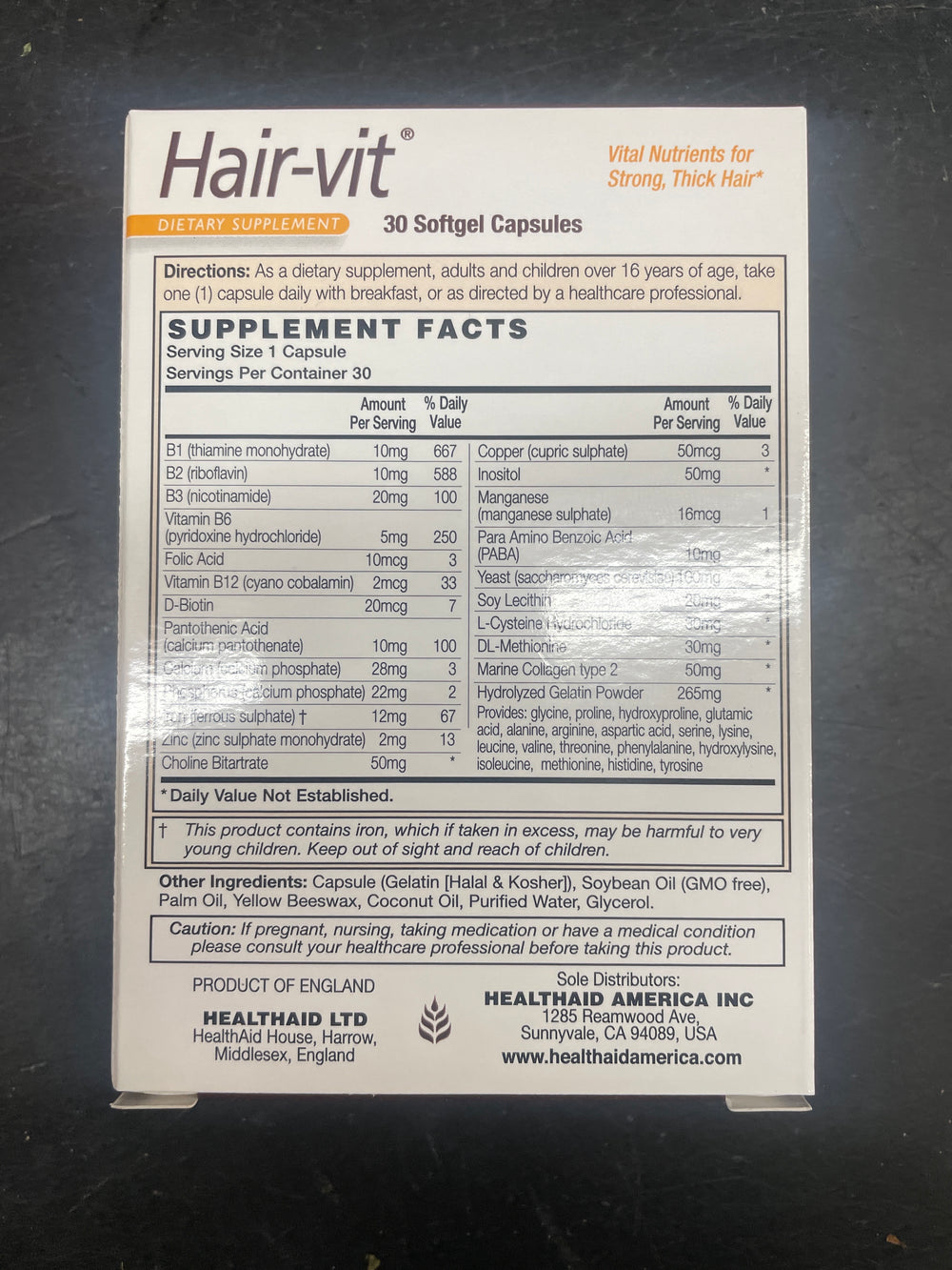 Hair-Vit vital nutrients for strong hair 30 soft gel caps