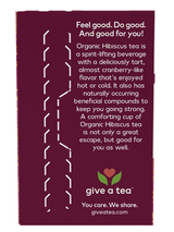 Feel good. Do good. And good for you! Organic Hibiscus tea is a spirit-lifting beverage with a deliciously tart, almost cranberry-like flavor that’s enjoyed hot or cold. It also has naturally occurring beneficial compounds to keep you going strong. A comforting cup of Organic Hibiscus tea is not only a great escape, but good for you as well.