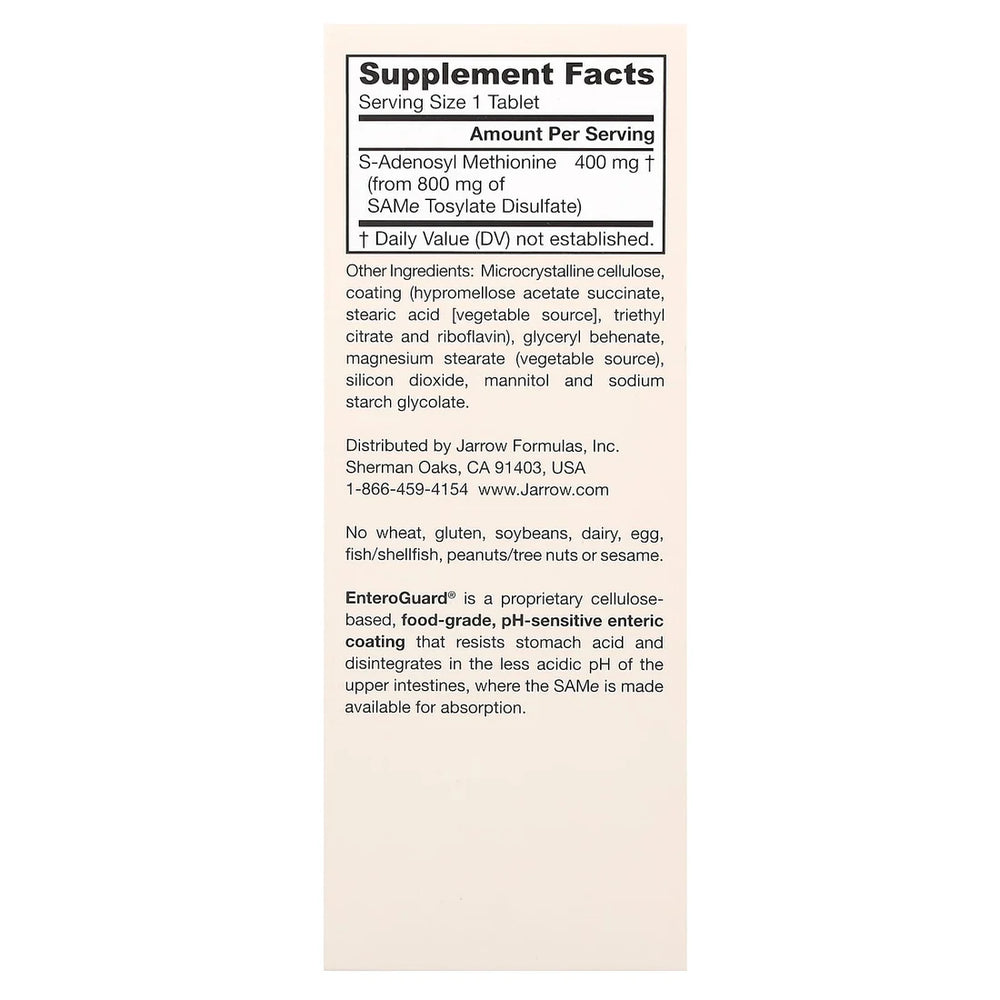 Jarrow Formulas, SAMe (Disulfate Tosylate), 400 mg, 60 Tablets