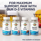 - Vitamin K Power: Found in leafy green vegetables, Vit K plays a role in helping your blood clot. But it’s also known for its ability to partner with Vitamin D, particularly Vitamin D3, to help the body absorb and utilize calcium for strong bones and teeth, heart health, and more.