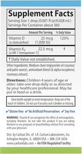 Carlson Kids Super Daily D3+K2 (25mcg (1,000 IU) & 22.5 mcg)