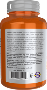 NOW® L-Glutamine Powder is a pure, free-form, non-essential amino acid and is the highest grade available.