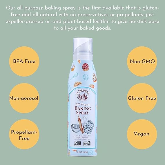- Gluten-free: La Tourangelle cooking spray is gluten-free. Other cooking sprays contain flour to make them non-stick. In contrast, La Tourangelle uses lecithin, a non-stick agent derived from plants.