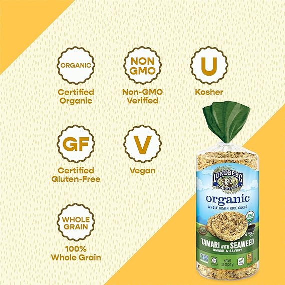 - Lundberg Organic Tamari with Seaweed Rice Cakes are simply savory, complementing the hearty brown rice with a hint of umami flavor. Enjoy them “plain” or dress them up with your favorite toppings.
