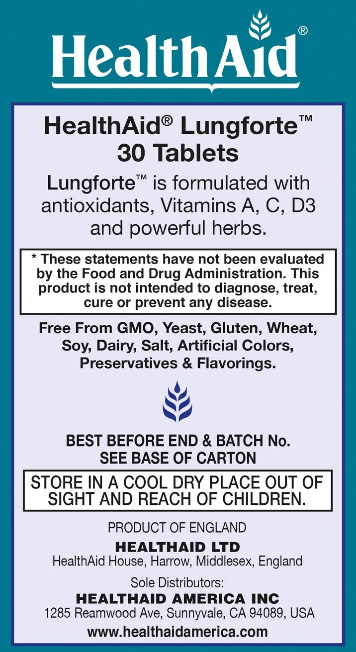 • Lungforte™ is formulated with antioxidants Vitamins A,C,D3 and powerful herbs containing antiseptic and anti-fungal essential oils*. Thyme, Olive Leaf and Garlic have been used and consumed as a lung natural remedy.*