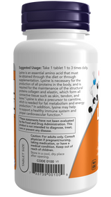 Lysine is an essential amino acid that must be obtained through the diet or through supplementation. Lysine is necessary for the production of all proteins in the body, and is required for the maintenance of the structural proteins collagen and elastin, which form all connective tissue such as skin, tendon, and bone.* Lysine is also a precursor to carnitine, which is needed for fat metabolism and energy production.* In addition, lysine may help to support a healthy immune system and proper cardiovascular function.*
