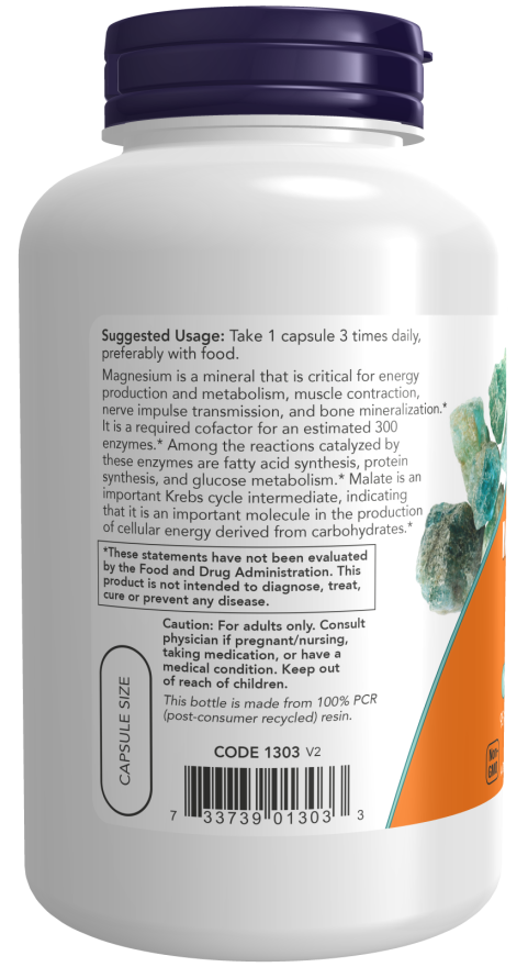 NOW® Magnesium Malate is a fully reacted mineral supplement.