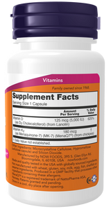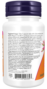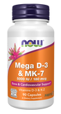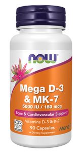 NOW® Mega D-3 & MK-7 combines vitamins D-3 and K-2, two nutrients extensively researched for their roles in the health of bones, teeth and the cardiovascular system.* Vitamin D-3 works with calcium to support bone health, and more recent studies indicate it’s important for immune system health as well.* MenaQ7® MK-7 is a unique soy-free, bioavailable form of vitamin K-2 that plays a critical role in arterial health through its ability to support proper calcium metabolism in blood vessels and arteries.* Vitamin K-2 is also important for the formation of strong, healthy bones.*