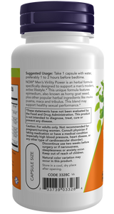 NOW® Men's Virility Power is an herbal formula specifically designed to support a man's modern, active lifestyle.* This unique formula features epimedium, also known as horny goat weed, plus other popular herbal ingredients like muira puama, maca and tribulus. This blend may support healthy sexual performance.*
